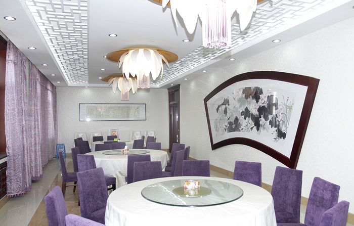 新食堂设计的最大亮点在于四楼教职工餐厅的书画摄影艺术品。大厅主墙悬挂着胡方正、魏明坤、滕福龙三位老师合作的国画《镜泊风韵》,卢科老师书法四条屏《陋室铭》和张一丹老师书写的由校党委书记金日勋创作的汉宫春《咏镜泊湖胜景》。四个主题文化餐厅的设置,它们均以花为主题,有“醉牡丹厅”、“诵兰厅”、“咏梅厅”、“吟荷厅”。四间主题餐厅中的牡丹、兰、梅、荷作品分别由我校艺术系教师纪敏、杨玉红、滕福龙、董新海绘制。校党委书记金日勋分别为每间餐厅作了主题诗,由艺术系教师卢科滕写。