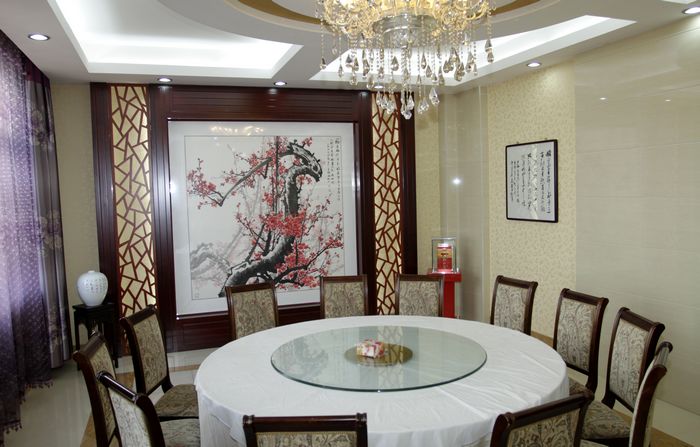 “咏梅厅”以梅花为文化主题。梅花象征坚韧不拔,不屈不挠,奋勇当先,自强不息的精神品质。她清雅俊逸、凌寒留香。花分五瓣,象征着“五福”,即长寿、富贵、康宁、好德、善终。梅以她高洁、坚强、谦虚的品格,给人以立志奋发的激励。在严寒中,梅开百花之先,独天下而春,花开繁盛,预示着黑龙江幼专蓬勃向上的发展。