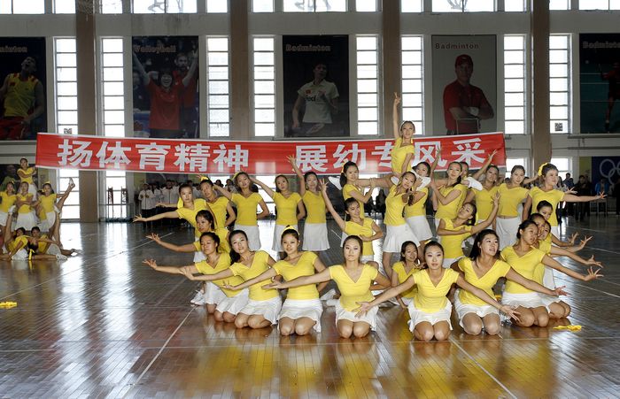 由我校音舞系在运动会开幕式带来的精彩的啦啦操表演