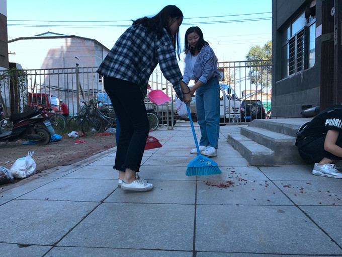 经历一番努力,原本杂乱的路面已经被打扫得干干净净。工作过后虽然有些乏累,但是看着用汗水换来的劳动成果,所有辛苦也烟消云散。