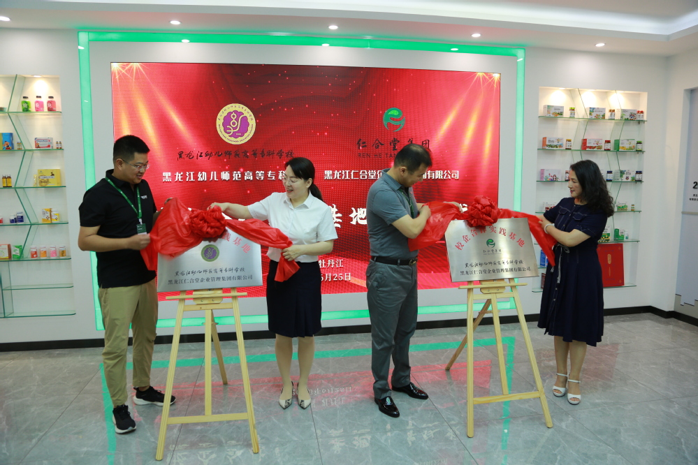 为深化产教融合,创新人才培养模式,拓宽学生实习和就业渠道,建立全方位、多层次的校企合作、产学研相融合的有效合作机制,6月25日上午,我校与黑龙江仁合堂企业管理集团有限公司举行了校企合作签约及揭牌仪式。学校党委副书记夏莹、继续教育部部长于滢慧、早期教育与特殊教育系主任耿杰及仁合堂集团总裁牟书才、生物科技副总经理何强、集团总裁办主任周绪仁等出席了活动。