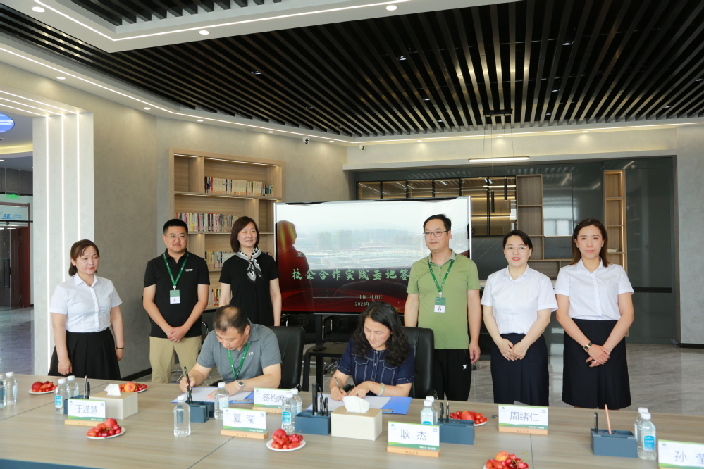 夏莹与牟书才共同签署了校企合作协议后,举行了揭牌仪式。