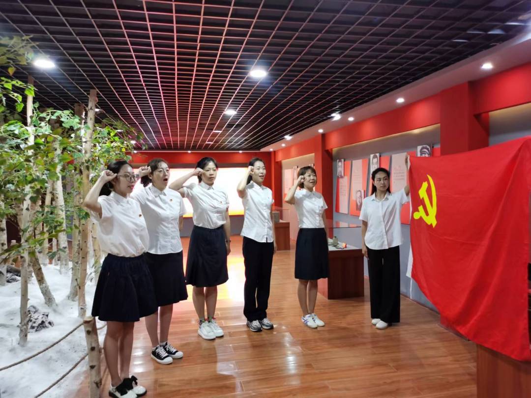参观结束后,全体党员重温了入党誓词,在鲜红的党旗下,高举右拳,庄严宣誓。