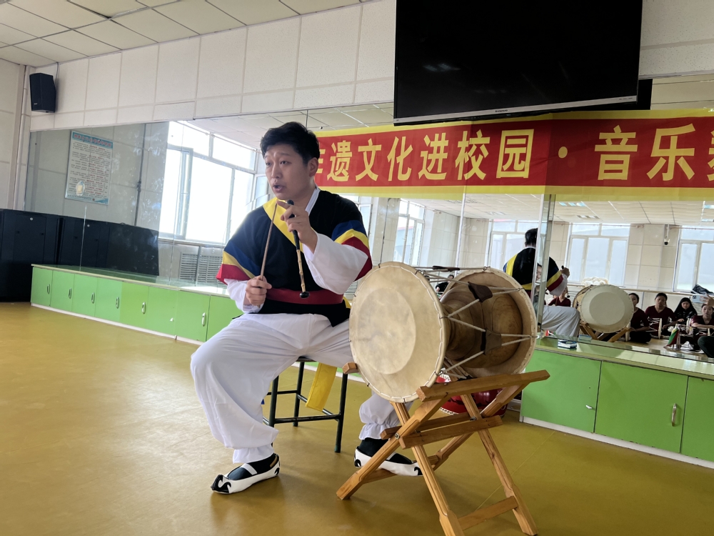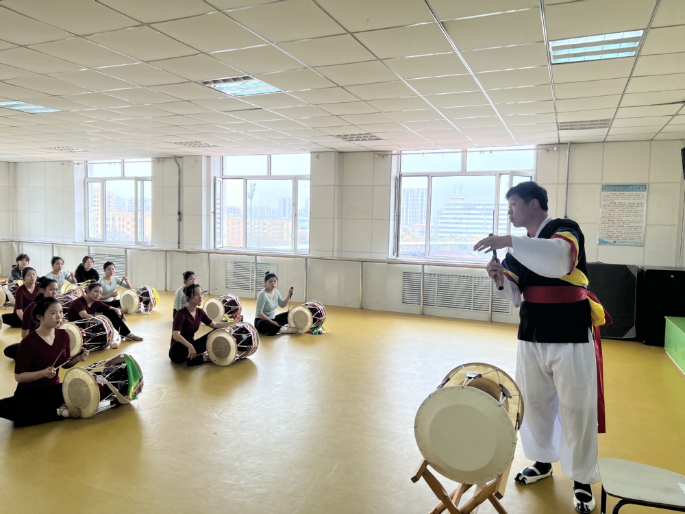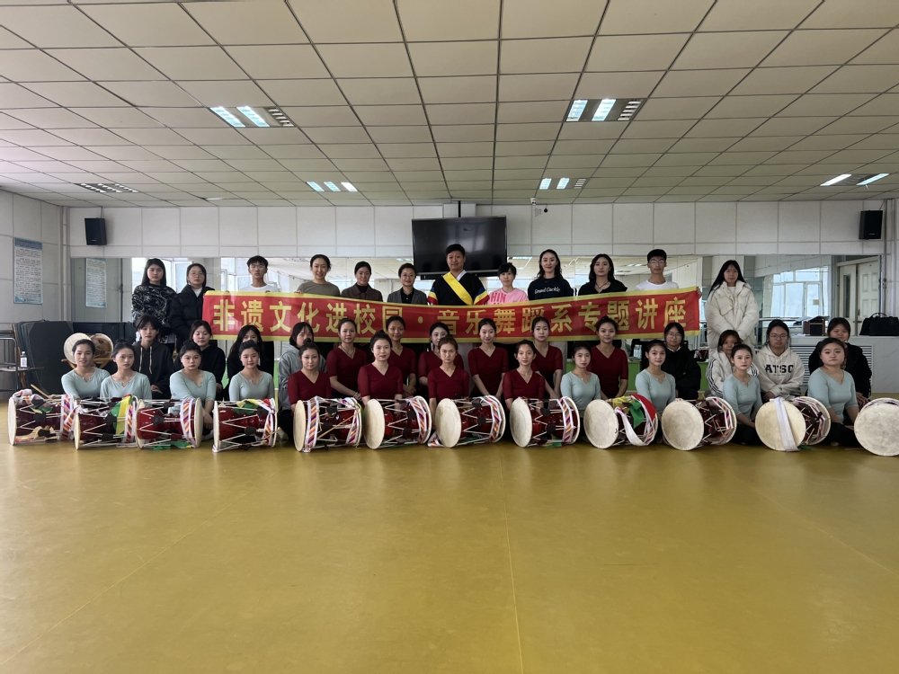 活动邀请校企合作实习共建单位,牡丹江市朝鲜民族艺术馆馆长、国家一级演员白莹,牡丹江市朝鲜民族艺术馆、馆站指导部部长、省级非物质文化遗产、朝鲜族四物打击乐第四代传承人金光烨老师为音乐舞蹈系师生上了一堂精彩的朝鲜族长鼓演奏课。