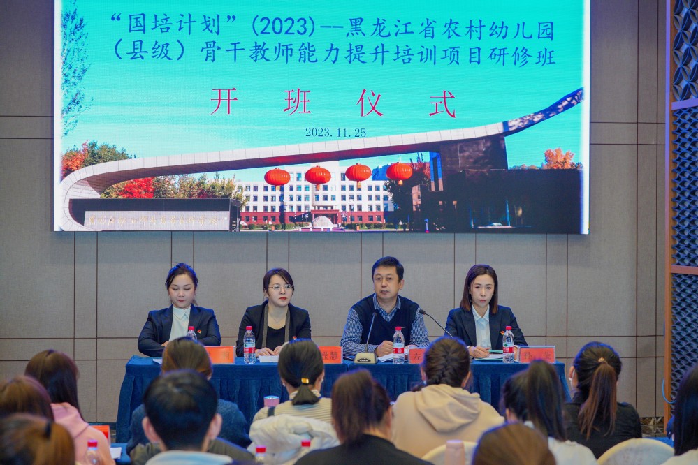 11月25日上午,由我校承办的“国培计划(2023)”黑龙江省农村幼儿园(县级)骨干教师能力提升培训项目开班仪式顺利举行。来自全省各地市县150名农村幼儿园骨干教师汇聚到牡丹江,参加为期15天的第一期培训。黑龙江幼专副校长左树生出席会议,继续教育部部长于滢慧、班主任付莉及孙莹老师参加了本次开班仪式。