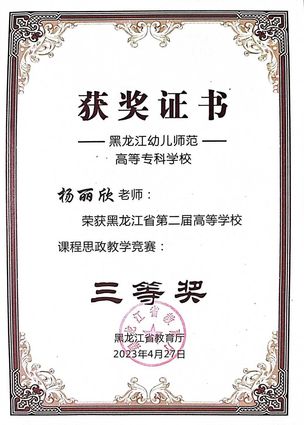 信息与电化教育系荣获黑龙江省第二届高等学校课程思政教学竞赛三等奖