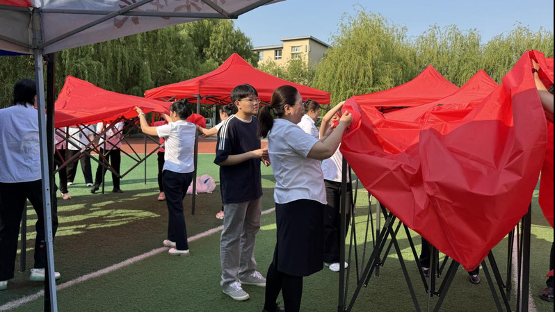 烈日当空,骄阳似火,却丝毫未能阻挡党员师生们服务奉献的热情。在党支部书记张静同志的带领下,师生党员们以实践为课堂,分工协作、默契配合,架设遮阳帐篷,为即将参与运动会的小运动员及家长搭建了舒适的休息区。本次活动不仅是一次服务实践,更是一次生动的党员学习教育。师生党员们在服务中践行初心使命,深刻体悟了勇于担当、甘于奉献的精神内涵,以实际行动诠释了共产党员的先锋模范作用,提升了党性修养与服务意识。