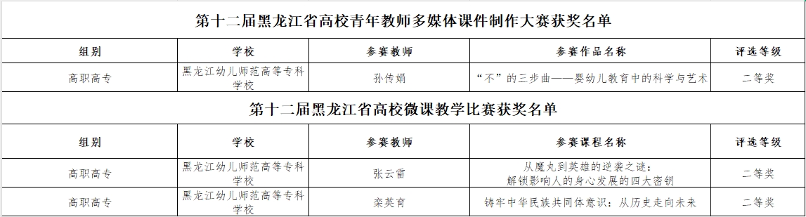 第十二届黑龙江省高校青年教师多媒体课件制作、微课教学大赛二等奖3项