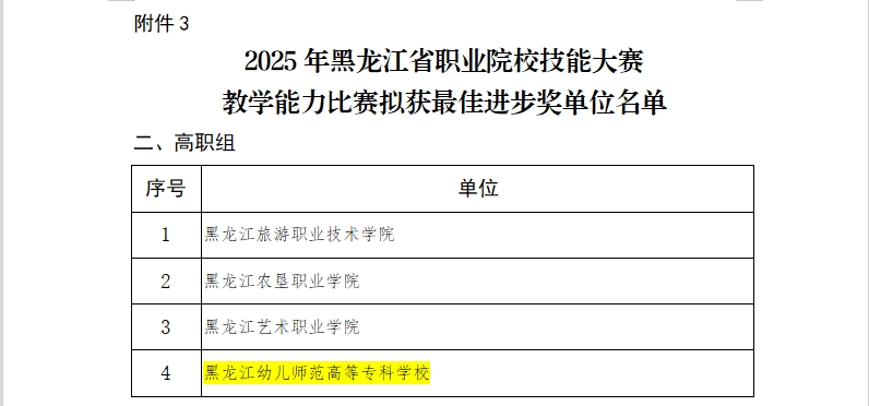 近期,黑龙江幼专在多项省级教学赛项及评比中喜获佳绩,充分展示了学校教师的专业水平和教育风采,进一步提升了学校的综合影响力。