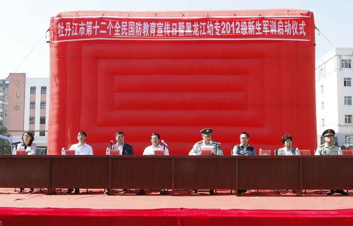 牡丹江市第十二个全民国防教育宣传日暨黑龙江幼专2012新生军训启动仪式